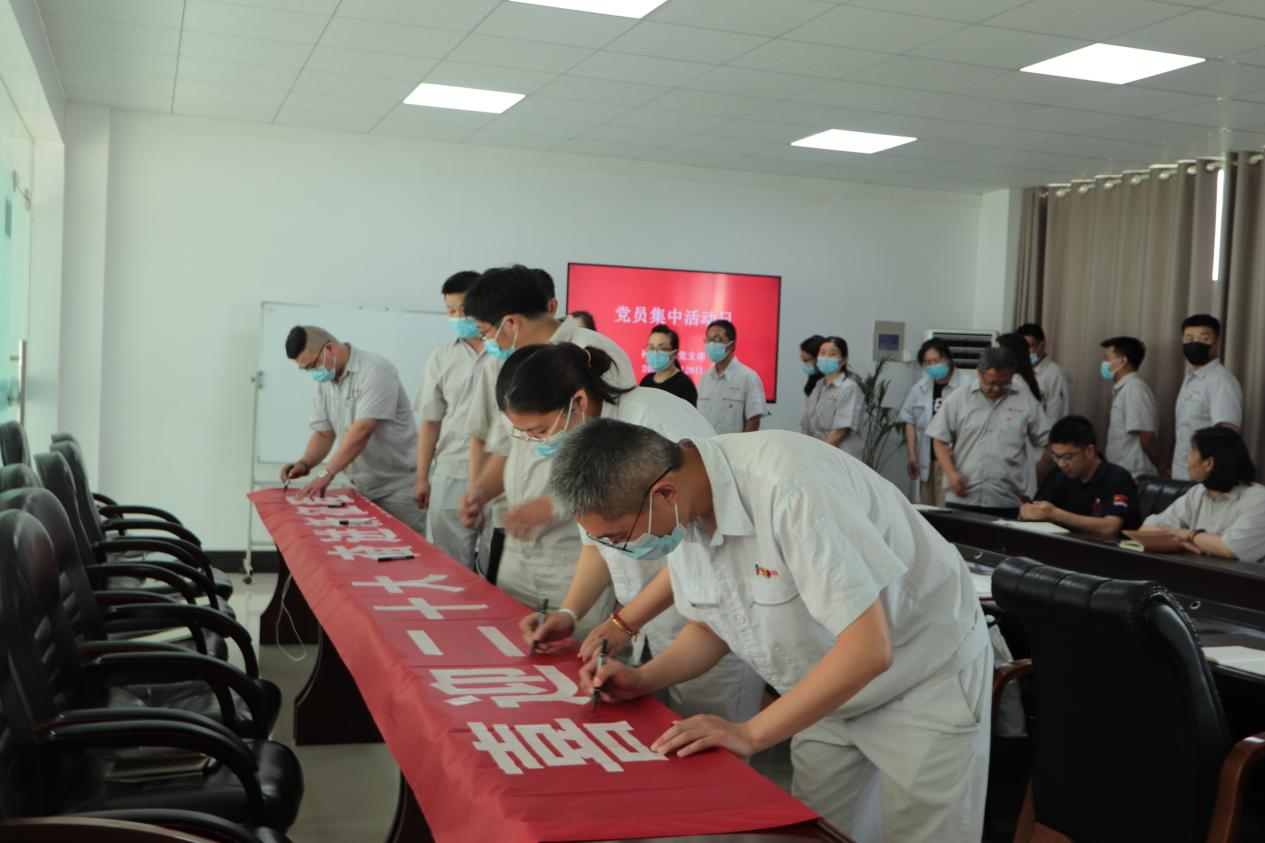 在七一即將來(lái)臨之際,公司組織全體黨員開(kāi)展“喜迎二十大,奮進(jìn)新征程”黨員集中活動(dòng)日?;顒?dòng)中,與會(huì)黨員集體宣誓,重溫入黨誓詞,回憶入黨初心,并在條幅上簽名,作出鄭重承諾。公司黨支部表彰一批優(yōu)秀共產(chǎn)黨員,激勵(lì)全體黨員守初心、勇?lián)姑?、攻?jiān)克難、建功立業(yè)。