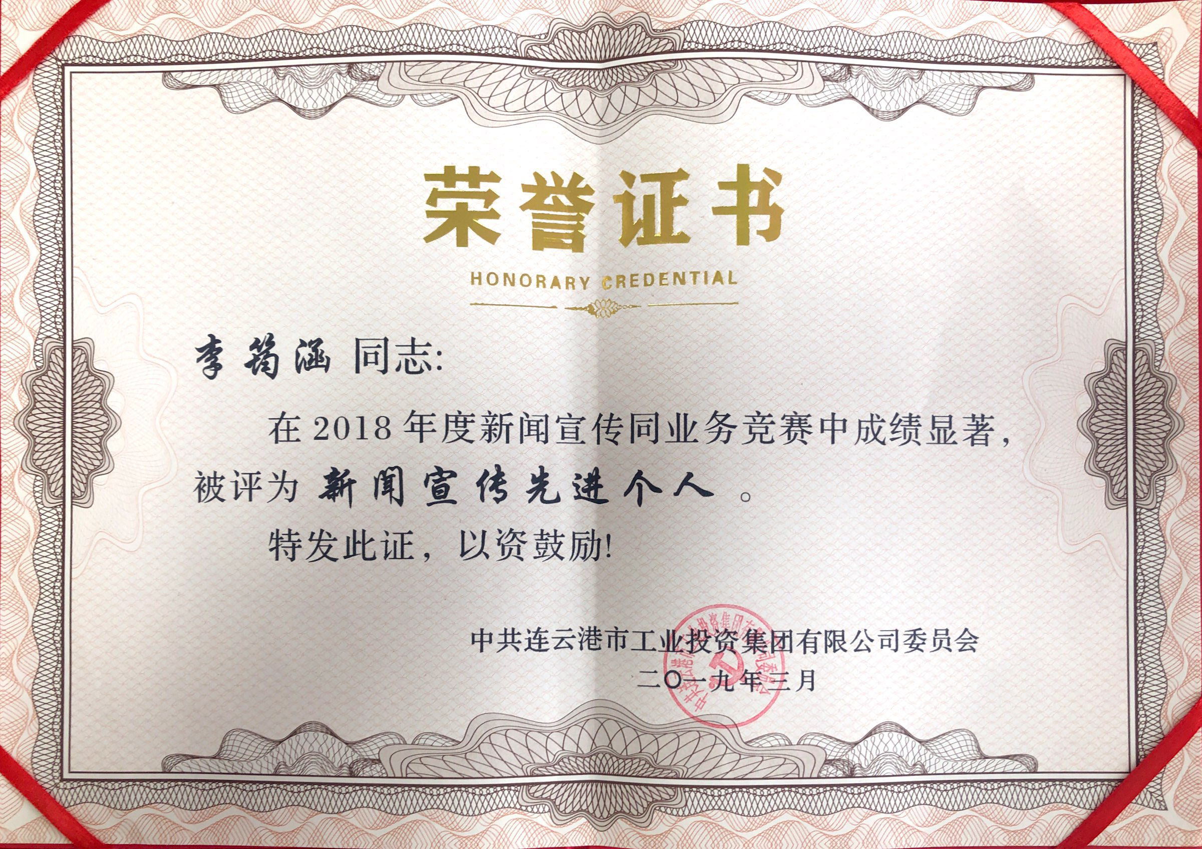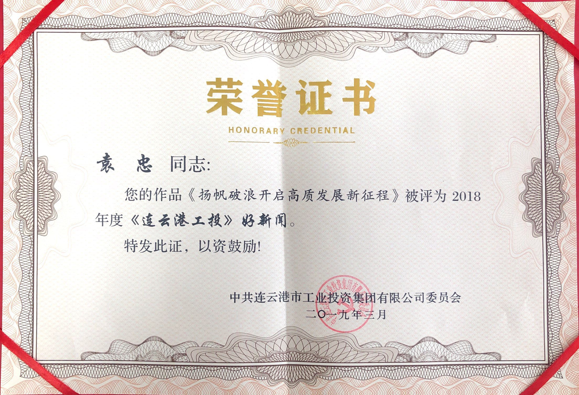 3月15日下午,集團黨委召開了“聚焦高質高效,聚力創(chuàng)新創(chuàng)優(yōu)”黨內主題教育實踐活動部署推進會。會上,我公司被評為“2018年度新聞宣傳工作先進單位”;黨支部副書記袁忠所著評論文章《揚帆破浪開啟高質發(fā)展新征程》,入選“2018年度《連云港工投》好新聞”;李筠涵獲得“2018年度新聞宣傳工作先進個人”稱號。