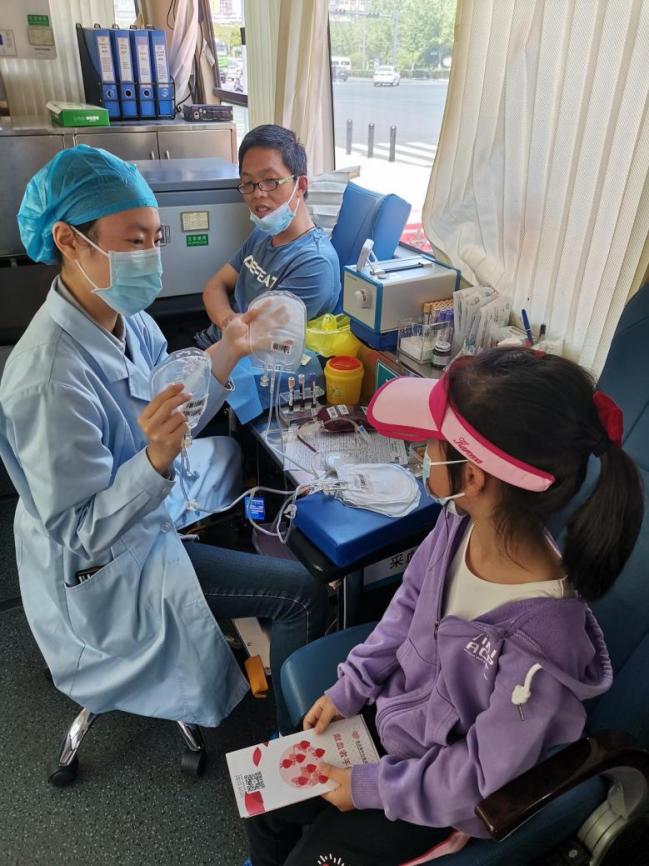 20224月的一天,我和家人利用休息時間,直奔解放橋獻血點。到目的地后,我們一起下車,我告訴老婆,讓她帶著孩子們在附近玩一會。由于處于常態(tài)化疫情防控期間,我?guī)峡谡?,完成查碼等工作后就上了獻血車。可能當時獻血車上人很少,護士發(fā)現(xiàn)了她們,說“你們也來車上休息一下吧!”。愛人帶著孩子們查碼、登記,穿上鞋套就上來了。