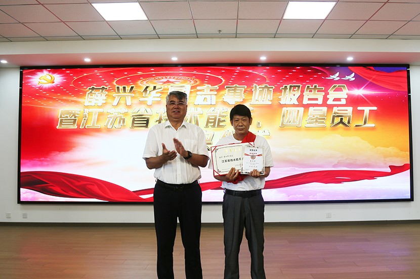 報(bào)告會(huì)上,公司總經(jīng)理卞霄宣讀了《關(guān)于增評(píng)薛興華同志為“四星級(jí)員工”的決定》和在全公司范圍內(nèi)開(kāi)展“向江蘇省技術(shù)能手薛興華同志學(xué)習(xí)”的活動(dòng)通知。公司黨委書(shū)記、董事長(zhǎng)王德志為薛興華同志進(jìn)行了現(xiàn)場(chǎng)授牌頒獎(jiǎng)。