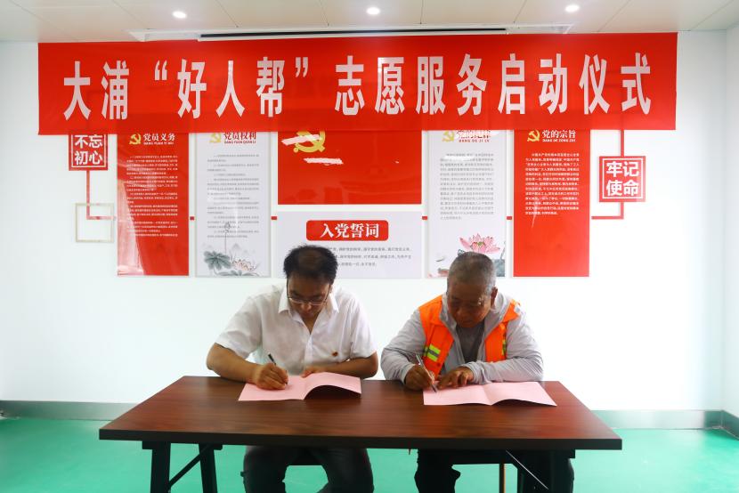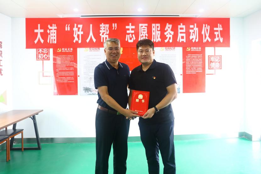 公司黨委書記、董事長王德志為“中國好人”常皓同志頒發(fā)了聘書,聘請常皓同志擔(dān)任“好人幫”志愿服務(wù)隊(duì)名譽(yù)輔導(dǎo)員。黨委副書記、工會主席、副總經(jīng)理傅健向“好人幫”志愿服務(wù)隊(duì)進(jìn)行了授旗,大浦分公司負(fù)責(zé)人代表“好人幫”志愿服務(wù)隊(duì)宣讀了《爭當(dāng)好人倡議書》,三名“好人幫”志愿服務(wù)隊(duì)成員與幫扶對象結(jié)對并簽訂了幫扶協(xié)議書。
