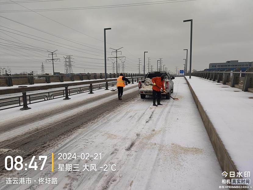 ? ? 同時,實施24小時統(tǒng)籌協(xié)調(diào)、多方調(diào)度,每小時收集匯總轄區(qū)道路積雪、結(jié)冰情況等,加強分析研判和信息上報,并加大路巡頻次,同時與兄弟單位做好聯(lián)勤聯(lián)動,對易結(jié)冰點、路段多舉措加大除雪力度,全力以赴確保轄區(qū)道路暢通。