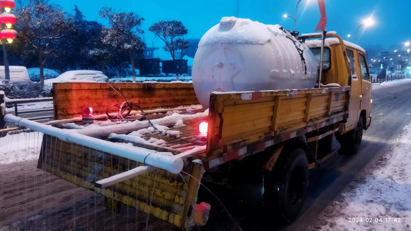 ? ? ? ? 今天(24日),港城普降暴雪,臺北華茂全員出動500余人次,大小機械100余臺(班),全力確保了轄區(qū)交通線暢通。這中間,出現(xiàn)一臺除雪“核武器”,這就是翔立分公司自制的鈣液噴淋除雪車。