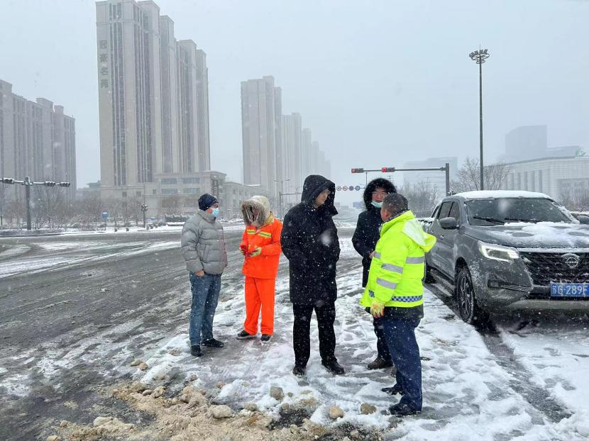 上午10時(shí)許,暴雪如約而至。裝有融雪劑的車輛全部整裝待發(fā),聞令而動,采取“人工+機(jī)械”不間斷作業(yè)模式,對轄區(qū)主次干道、橋涵、火車站東站、創(chuàng)智大廈等帶坡路段及時(shí)拋撒融雪劑,采取“滾刷+鏟車”組合方式,反復(fù)排掃路面積雪,確保主次干道、帶坡路段通暢無冰。