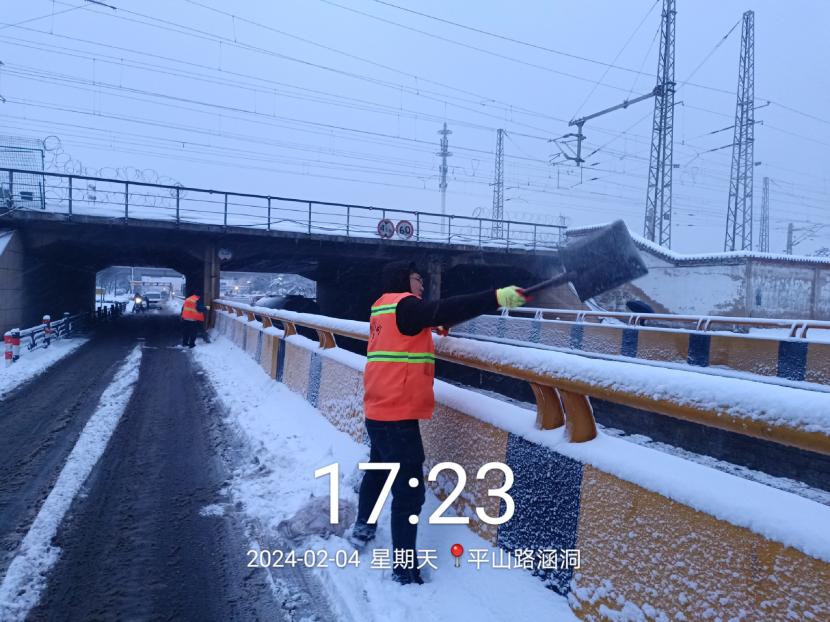 截至晚上22時(shí),公司全員出動500余人次,大小機(jī)械100余臺(班),全力確保了轄區(qū)交通線暢通。