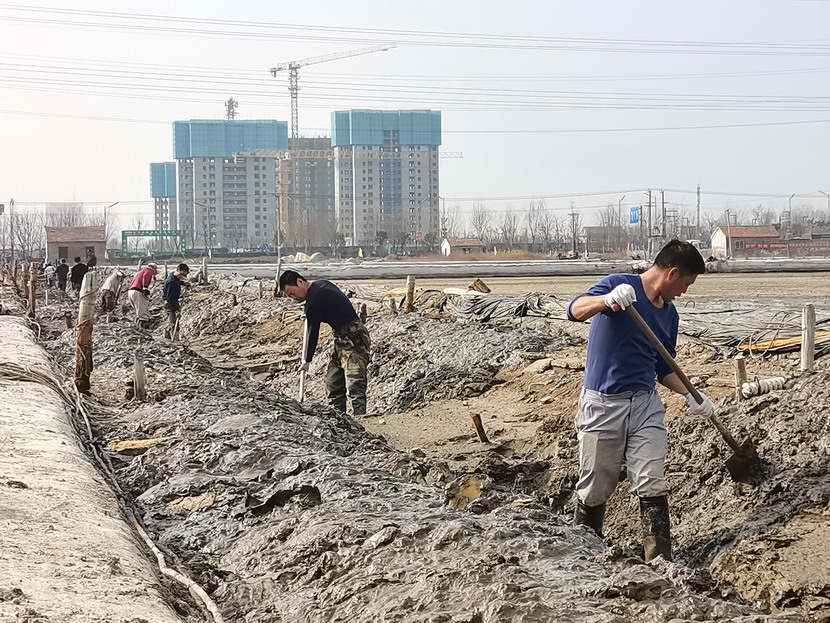 礦鹽復(fù)產(chǎn)項(xiàng)目部,聘請日曬制鹽專家王緒前進(jìn)行工藝指導(dǎo),聘請勞模朱春年帶領(lǐng)團(tuán)隊(duì)攻堅(jiān)。復(fù)產(chǎn)戰(zhàn)役從202112月就打響了,春節(jié)的時(shí)候,他們僅休了三天假,大年初三全部到崗,一鍬一鍬挖泥通溝,一條一條池堰加高整平,一塊一塊鹽田清理壓實(shí)......2月,他們硬是把征地后廢棄許久的鹽田和邊角地整理成礦鹽基地,結(jié)晶池面積達(dá)1950公畝,達(dá)產(chǎn)可產(chǎn)原鹽20000噸。