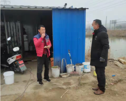 共產(chǎn)黨員趙紹慶和朱文金在疫情期間,除了參觀社區(qū)志愿活動(dòng),進(jìn)行卡口值勤和衛(wèi)生消毒外,還每天往返于公司各閑置土地之間。他們頂著寒風(fēng),穿梭于池塘地頭間,向即將清退的養(yǎng)殖戶宣傳公司和清退政策,幫助人手不夠的養(yǎng)殖戶對(duì)養(yǎng)殖塘附近進(jìn)行全面環(huán)境消殺,幫助即將退出離開的養(yǎng)殖戶清理各類物資,幫助他們把需要帶走的物品整理歸類,以便盡早搬走,騰出池塘方便開發(fā)區(qū)征收。