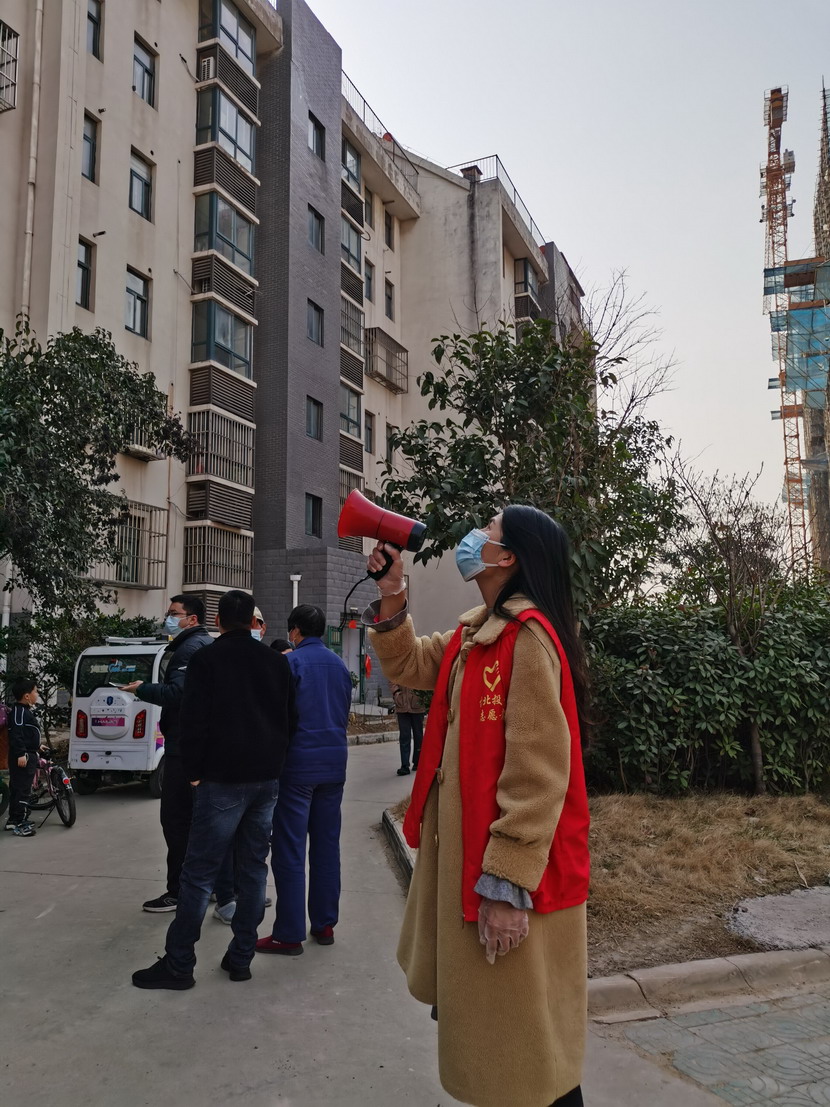 海州區(qū)幸福路街道“最美大白”秦英與社區(qū)人員工作中