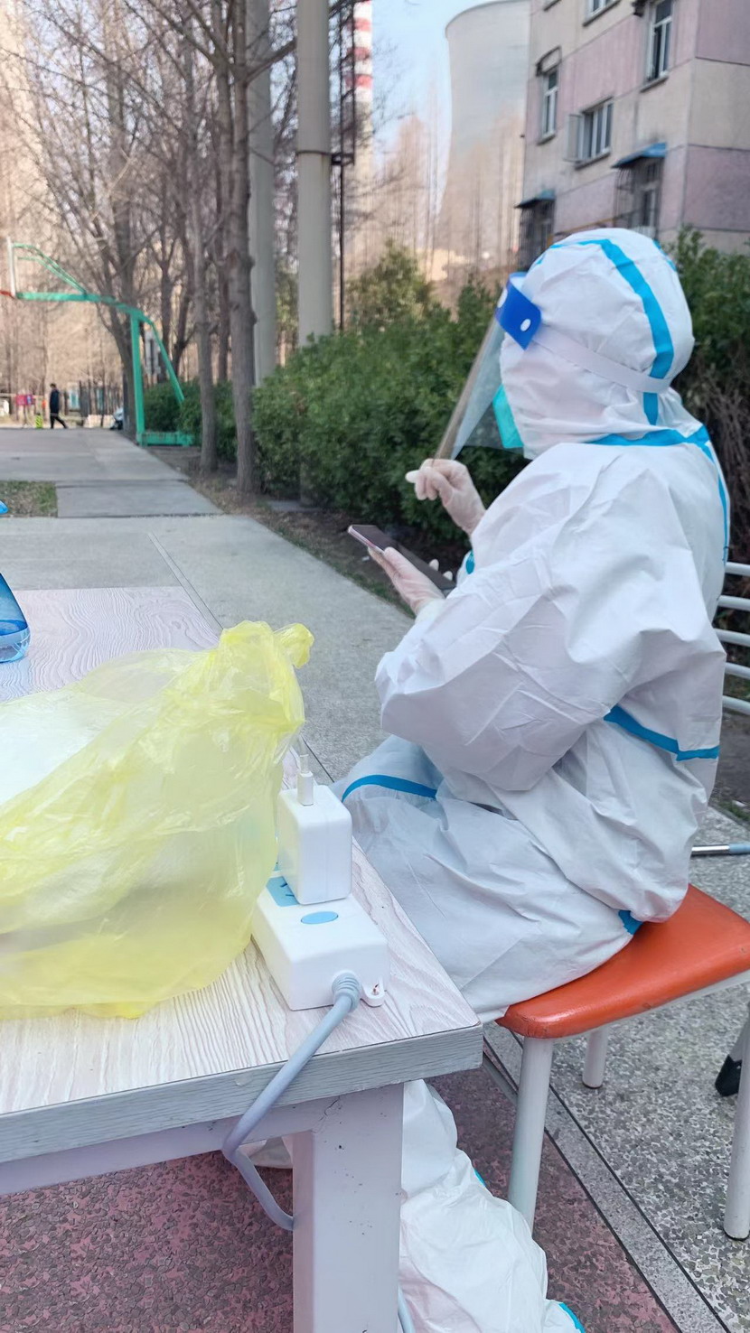 38日,臨時(shí)黨支部成立,黨員志愿者們隨即奔赴社區(qū)核酸檢測(cè)現(xiàn)場(chǎng)。當(dāng)天,志愿者們穿上防護(hù)服?!澳愫?,請(qǐng)戴好口罩,出示健康碼。”“你好,這邊人比較少,請(qǐng)往這邊走,保持一米距離?!本S持現(xiàn)場(chǎng)秩序、檢查健康碼、登記核酸個(gè)人信息……志愿者們堅(jiān)守在各自責(zé)任區(qū),細(xì)心、耐心回答居民們的各類問(wèn)題,忙得連喝水的時(shí)間都沒(méi)有。細(xì)致周到的服務(wù)、無(wú)私的奉獻(xiàn)精神,得到了社區(qū)居民們的一致認(rèn)可和贊揚(yáng)。