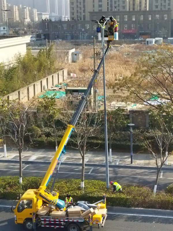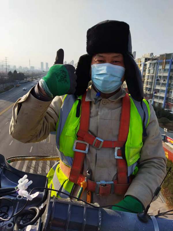 ?該項(xiàng)城市照明提升工程工程量大(約6500套路燈),工期緊。為了趕時(shí)間進(jìn)度,翔立“鐵軍”們由12月27開始施工,日以繼夜、馬不停蹄的連續(xù)奮戰(zhàn)在工程一線,沒有一個(gè)人掉隊(duì),沒人喊苦叫累,個(gè)個(gè)都像鉚足了勁的“小牯?!?。肩帶《安全員》紅袖章的工程負(fù)責(zé)人喬以成騎著電瓶車不時(shí)地在海寧大道上來回穿梭著,“王師傅,高空作業(yè)車四條支撐臂必須支撐平穩(wěn)牢固后再提升哦”,“段青春,把前方施工的警示牌擺在車輛后面,還有道路安全錐桶一定要將作業(yè)區(qū)域圍起來,與后面來車方向保持安全距離?!痹谑袇^(qū)人流密集的道路上同時(shí)有5臺(tái)登高作業(yè)車分區(qū)域高空作業(yè)的情況下,他最放心不下,畢竟是高空作業(yè)!為了防止高空墜落,登高施工操作人員全部按要求規(guī)范佩戴安全帶、系好安全繩、絕緣鞋、防寒安全帽、警示馬甲一應(yīng)俱全,武裝整齊。為防高空落物,作業(yè)車吊籃內(nèi)使用的工具全部系上“失手繩”,安全施工是必要的前提,有措施,有辦法,畢竟千條萬條,安全才是第一條!