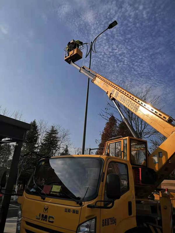?早已習(xí)慣了風(fēng)餐露宿的翔立人,中午一碗面條、或是一碗蓋澆飯草草了事,飯后不休息,直接爬上高空作業(yè)車?yán)^續(xù)工作,運(yùn)輸隊(duì)圍繞著幾臺(tái)高空作業(yè)車也是忙個(gè)不亦樂乎,“加浦,像這樣將舊路燈立起來,先貼著車廂圍一圈,這樣可以多裝點(diǎn)”,既要負(fù)責(zé)將舊路燈收集送到甲方倉(cāng)庫,又要領(lǐng)出來供給幾個(gè)隊(duì)的物料供應(yīng),同樣是忙的馬不停蹄。大家你追我趕,相互暗暗競(jìng)爭(zhēng)者,賽安全,比質(zhì)量,趕進(jìn)度。晚上收工后,翔立辦公群里各隊(duì)報(bào)工作量“一隊(duì)今天完成了18根桿”,“二隊(duì)今天干得最多了,他們完成20根桿,換了40個(gè)燈頭,不簡(jiǎn)單啊”,“你也不錯(cuò)嗎,一個(gè)人完成了16根桿,還想咋的”,“今天俺們隊(duì)的工具不得手,明天我們隊(duì)一定要超過你們”,群里大家相互鼓勵(lì)著!
