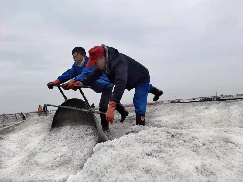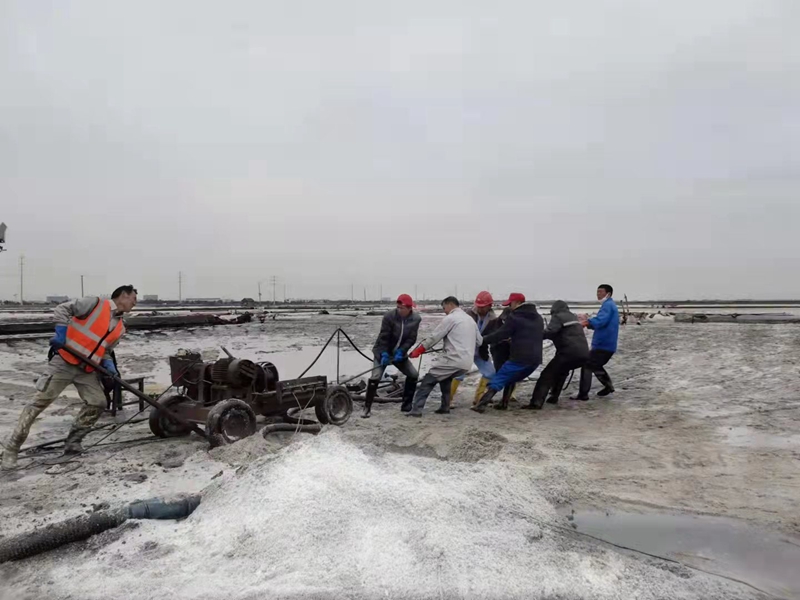 一是秋扒鹽掃尾工程。從8月中下旬開扒以來,扒鹽時(shí)長(zhǎng)長(zhǎng)達(dá)3個(gè)月,面對(duì)扒鹽時(shí)間緊、任務(wù)重、人手嚴(yán)重不足等諸多困難,公司廣大干群發(fā)揚(yáng)“四拼”工作作風(fēng),團(tuán)結(jié)一心,攻堅(jiān)克難,陸續(xù)轉(zhuǎn)戰(zhàn)大浦、海濱、大八組,機(jī)械、人工循環(huán)扒,扒鹽面積共計(jì)3255公畝,扒鹽量2.8萬噸。