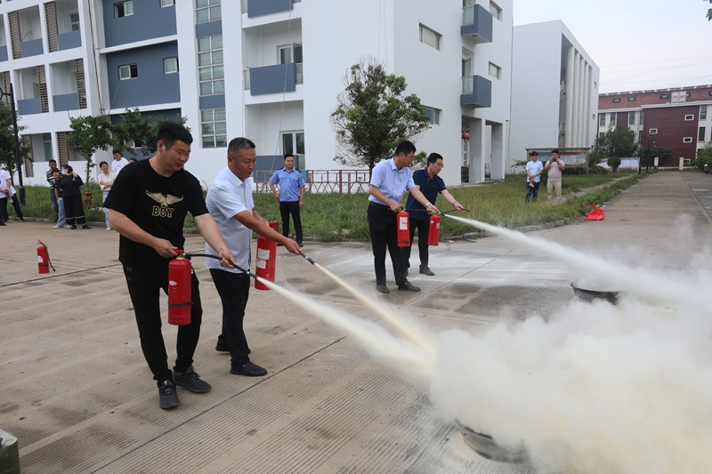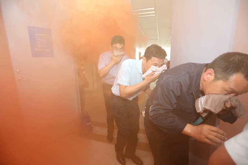 在消防演練現(xiàn)場(chǎng)我們模擬了突發(fā)火災(zāi),受濃煙影響的參培人員進(jìn)行快速有序的疏散逃生。按照董教員的講解要求,大家“三折八疊”毛巾,浸濕后捂住口鼻,俯下身子,肘部依靠著墻壁,一個(gè)跟著一個(gè),在濃煙中疏散撤離。接著演練還進(jìn)行了油盆滅火和高壓水槍使用培訓(xùn)實(shí)操。參演人員嚴(yán)肅認(rèn)真,服從指揮,整個(gè)應(yīng)急疏散演練過(guò)程忙而不亂、井然有序。