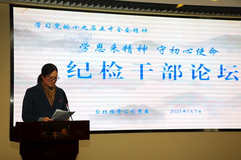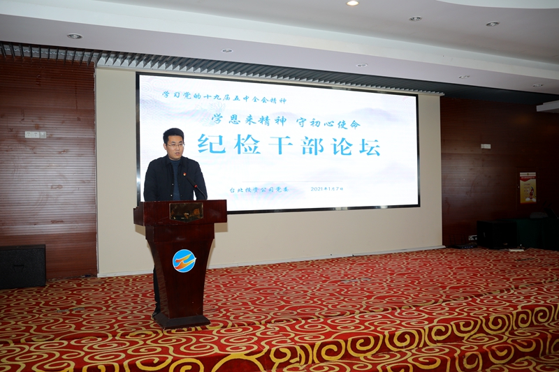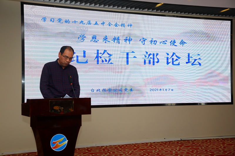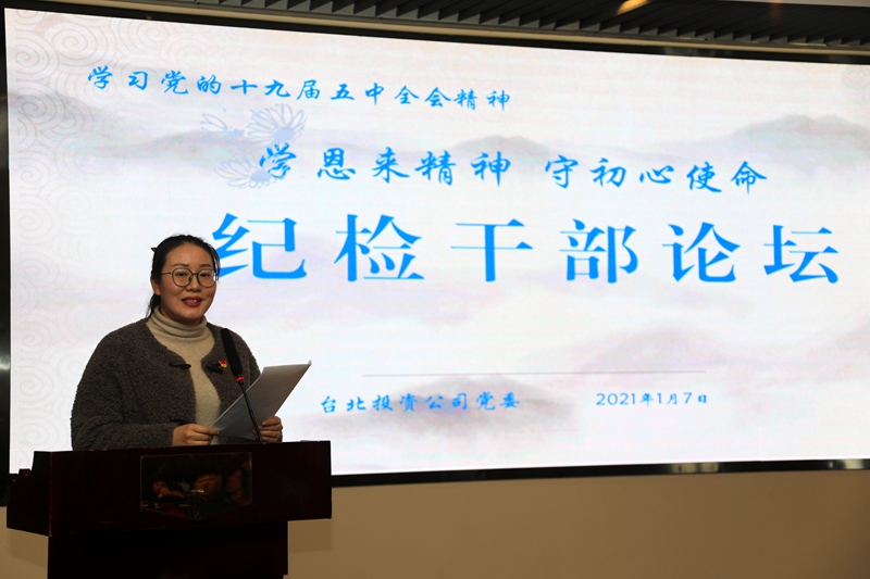 “感受偉人風(fēng)范,踐行初心使命……”從臺北投資公司十樓會議室里傳來鏗鏘有力的演講聲。為深入推進(jìn)“學(xué)恩來精神、守初心使命”專題教育活動,鍛造忠誠干凈擔(dān)當(dāng)?shù)?/span>紀(jì)檢干部隊伍,17日下午,公司舉辦紀(jì)檢干部專題大講堂。公司領(lǐng)導(dǎo)班子成員,各單位、部門中層副職以上管理人員參加了活動。