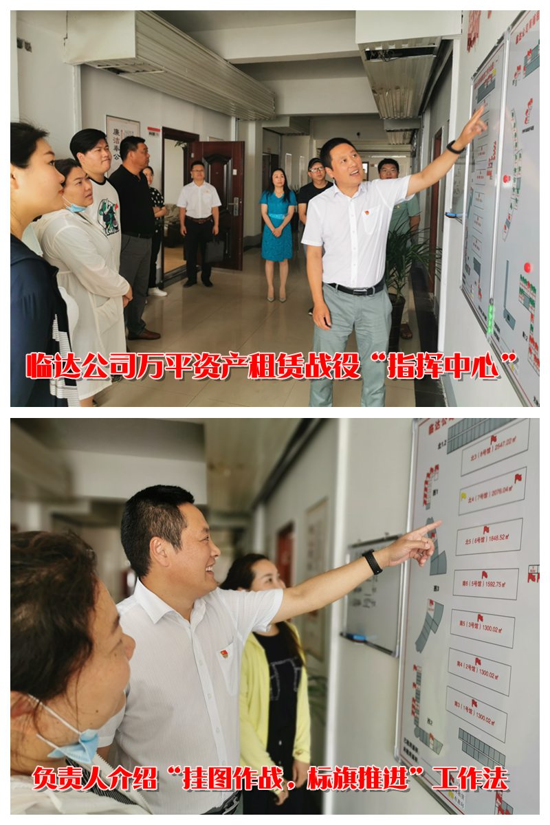 “分解任務(wù),每天出租180平方,我們用掛圖作戰(zhàn)工作方法,在困難中找優(yōu)勢,在優(yōu)勢中找方法,將集中資產(chǎn)劃分片區(qū),分而治之,實(shí)行一個(gè)片區(qū)一個(gè)目標(biāo)導(dǎo)向,一個(gè)片區(qū)一個(gè)工作方法”“臨鋒而行,達(dá)道致遠(yuǎn),這是臨達(dá)公司的立企宗旨,我們是這么喊,也是這么干的”“臨達(dá)的年輕同志們是我們能夠突破7200平方任務(wù)的秘密武器,他們上門商談至天黑,周六周日讓他們休息都不休息,依然堅(jiān)守崗位跑市場”在臨達(dá)公司的“作戰(zhàn)指揮中心”,聽取負(fù)責(zé)人杜洪波的介紹后,參加采風(fēng)的同志都忍不住豎起大拇指為先拔頭籌,超額超時(shí)完成任務(wù)的臨達(dá)全體“指戰(zhàn)員”點(diǎn)了個(gè)贊。