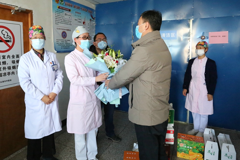 吳衛(wèi)平對(duì)中醫(yī)院醫(yī)護(hù)人員投身戰(zhàn)“疫”一線,用生命拯救生命,展現(xiàn)出的舍生忘死、救死扶傷的高尚職業(yè)道德,表示了崇高的敬意,同時(shí)也指出投資公司與中醫(yī)院還有一段神奇的紐帶:公司職工在一場(chǎng)意外休克中,幸得中醫(yī)院護(hù)士全力搶救才轉(zhuǎn)危為安,而這名護(hù)士既是我公司職工的家屬,也是中醫(yī)院廣大奮戰(zhàn)在疫情防控一線醫(yī)護(hù)者中的一員。這次來一是向中醫(yī)院的“逆行者們”表示敬意;二是向救死扶傷、醫(yī)者仁心的護(hù)士表示感謝;三是代表公司工會(huì)看望慰問共戰(zhàn)疫,齊奉獻(xiàn)的職工家庭。