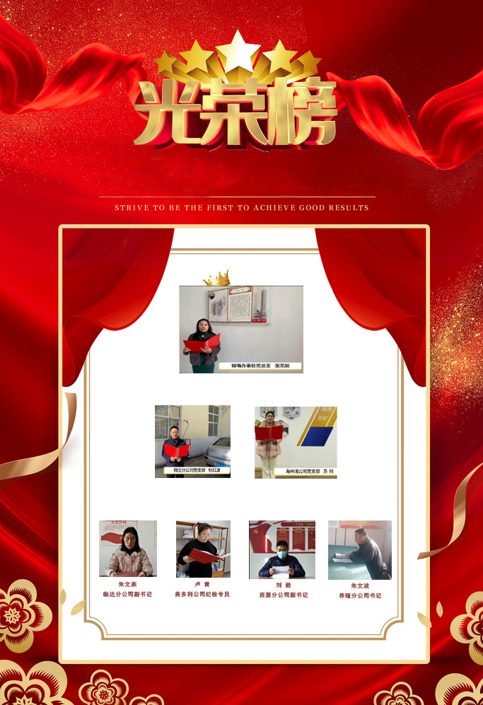 ? ? 為深入學(xué)習(xí)“黨的二十大”報(bào)告精神,公司黨委組織開展黨務(wù)工作者讀黨的二十大原文視頻拍攝活動(dòng),經(jīng)公司黨委評(píng)比,現(xiàn)將得獎(jiǎng)人員名單公布如下: