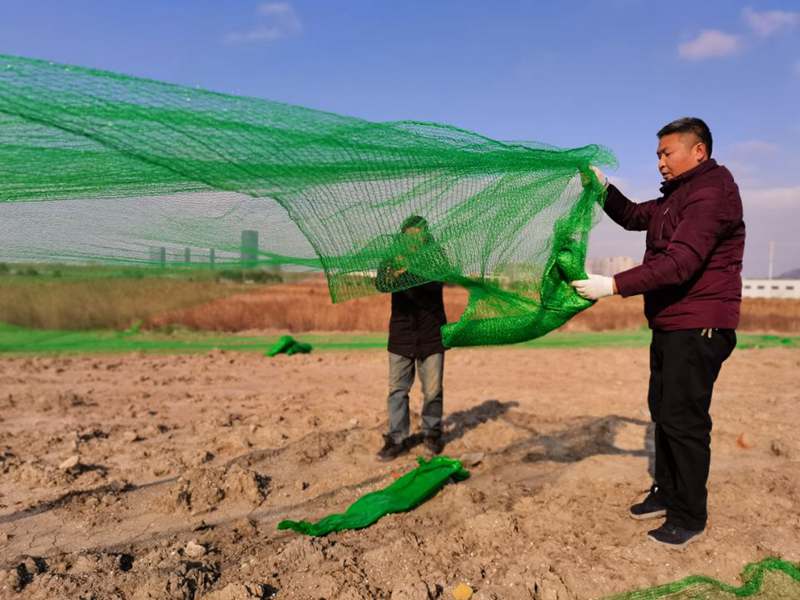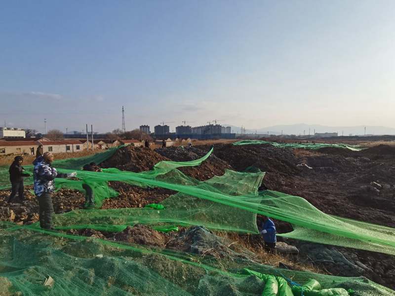 一名黨員就是一面旗幟,十余處山丘上,不只是一面“黨員突擊隊”旗,而是幾十上百面的“戰(zhàn)旗”。在鮮紅旗幟的引領下,僅僅一天時間,突擊隊員們“沖鋒陷陣”,攻克一個又一個“山頭”,鋪設800余張防塵網(wǎng),共計200余畝裸土。