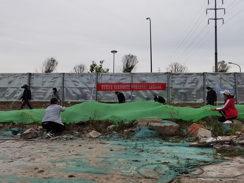 4月20日,為創(chuàng)造干凈衛(wèi)生的發(fā)展環(huán)境,豐富黨史學習教育形式,翔立分公司黨支部、海州灣公司黨支部聯(lián)合開展“黨史教育錘黨性環(huán)境整治我先行”主題黨日活動,將黨史學習和創(chuàng)衛(wèi)活動有機結(jié)合起來,組織黨員對公司的車站小灘進行環(huán)境整治,為裸露在外的土地進行防塵網(wǎng)鋪設(shè)。現(xiàn)場風沙彌漫,塵土飛揚,經(jīng)過兩個小時的努力,鋪設(shè)的防塵網(wǎng)有效防止了因大風天氣造成的二次揚塵。質(zhì)勝于華,行勝于言,學史力行是明理、增信、崇德的落腳點,是開展黨史學習教育的關(guān)鍵環(huán)節(jié)。