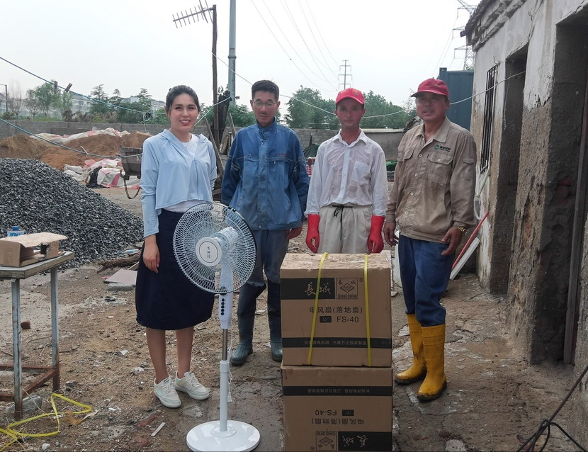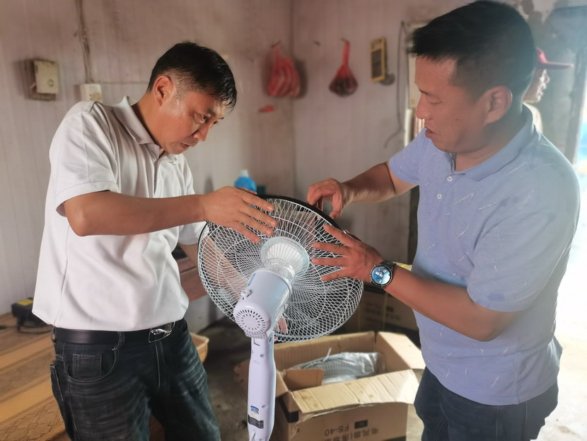 近期,海州灣工會協(xié)同公司一起深入班組開展“安全生產(chǎn)百日攻堅大行動”,認(rèn)真排查生產(chǎn)作業(yè)場所及職工值班室安全隱患。在排查過程中,發(fā)現(xiàn)值班室的吊扇十分陳舊,運轉(zhuǎn)時有晃動的現(xiàn)象,存在風(fēng)葉脫落的危險,且風(fēng)力微弱,達不到良好的降溫效果。工會現(xiàn)場拿出解決方案,決定采購一批落地扇送入班組,為職工送去一絲清涼。