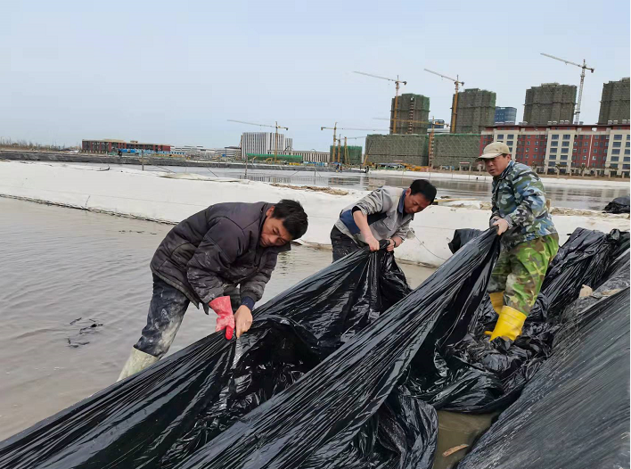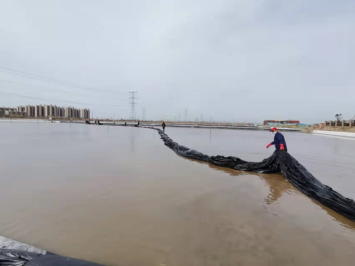 不負春光早起步,大干快上正當時。隨著我市疫情剛一解封,海州灣公司礦鹽復產(chǎn)工程立即開啟加速“奔跑”模式,經(jīng)過前期充分的準備和精心部署,在331日疫情解封的第一天,安排貨車將第一批塑布運輸?shù)轿?。次日早?/span>7點,海州灣公司和翔立分公司全體員工在先鋒班組集合,開啟第一輪塑布安裝以及鹵水灌池工作,搶抓“小滿”前后十八天的池內(nèi)長鹽黃金期。