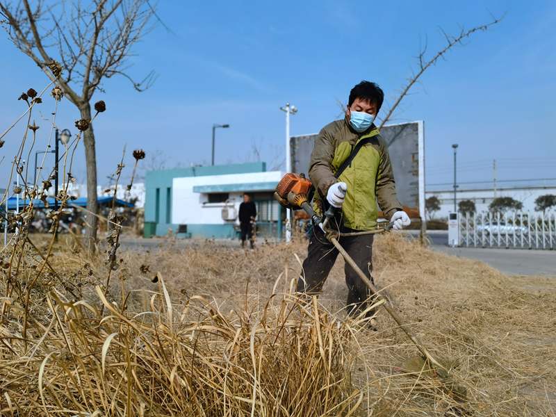 經(jīng)驗(yàn)老道的“除草匠人”朱春華一馬當(dāng)先,一人成軍,小小雜草在揮舞的打草機(jī)下“灰飛煙滅”
