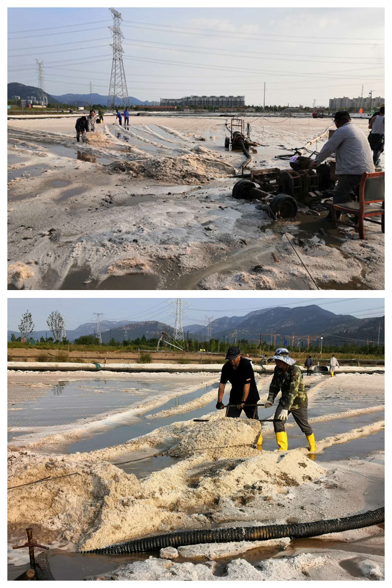 “大架在向后移動(dòng)4到5公分,鹽鎊、鹵鎊與管頭螺絲擰緊沒(méi)有?觸電保安器試跳一下”…….扒鹽現(xiàn)場(chǎng)忙碌而有序,扒鹽人員對(duì)開機(jī)前準(zhǔn)備工作再一次檢查確認(rèn)。15:56分鞭炮齊鳴、禮花滿天,“秋扒”正式開啟。本次扒鹽采用人工與機(jī)械相結(jié)合的工作方法,根據(jù)鹽層的厚薄程度決定扒鹽的方式。此次扒鹽生產(chǎn)周期長(zhǎng)、工作量大,工區(qū)認(rèn)真組織、精心安排,制定了詳細(xì)、”人性化”的管理人員跟班督查值班表(男同志夜班女同志白班)。要求跟班人員,務(wù)必將“安全、質(zhì)量”兩大主題貫穿整個(gè)秋扒工作的各環(huán)節(jié),每天深入扒鹽點(diǎn)開展全面綜合性的定點(diǎn)檢查,重點(diǎn)圍繞“工藝執(zhí)行、安全防范、護(hù)具穿戴”等,職工容易產(chǎn)生思想麻痹的細(xì)節(jié)工作,嚴(yán)明紀(jì)律,杜絕違章作業(yè)。搶時(shí)間爭(zhēng)速度,確保“秋扒”高效有序完成。