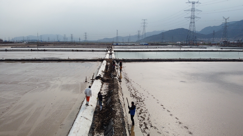 此時正是春曬制鹽的“黃金期”,海州灣公司獲知情況后,主動帶領全體員工組成“突擊隊”為兄弟單位“減負”,在大家共同努力下長約1200米的池堰一上午修整完畢,為下一步的池內(nèi)壓實及早日灌池贏得了寶貴的時間。