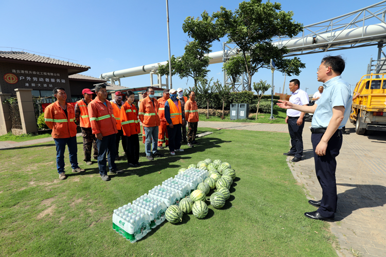 7月5日下午,投資公司黨委副書記、工會主席劉剛深入一線看望慰問高溫作業(yè)職工,為他們送去礦泉水、西瓜等防暑降溫物品,囑咐他們調節(jié)好高溫作業(yè)時間,用好防暑降溫藥品包,確保高溫作業(yè)安全。