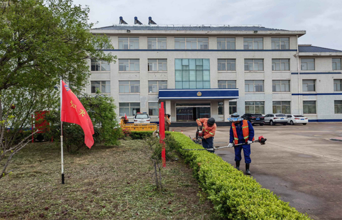 6月9日,該公司“黨員突擊隊+綠化養(yǎng)護(hù)技術(shù)骨干”20余人聯(lián)合組隊,充分發(fā)揮綠化管理專業(yè)技能優(yōu)勢,為板橋邊防派出所內(nèi)綠化帶進(jìn)行清理修剪。工作現(xiàn)場,針對實際情況制定科學(xué)修剪方案。全體隊員手拿割灌機(jī)、綠籬機(jī)、一致排開,利用剪枝工具對樹枝進(jìn)行修剪,并對剪下的殘枝和綠化帶的雜草進(jìn)行清除。經(jīng)過半天的辛勤勞動,修剪草坪500平方米、海桐綠化帶200余米及清理雜草20余車……。警營內(nèi)綠化帶,樹木線條變得流暢、草坪平整干凈,整個環(huán)境面貌煥然一新。