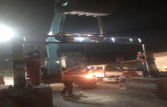 本次施工作業(yè)前,該公司提前報備交警部門,科學(xué)設(shè)計施工方案,合理安排作業(yè)時間,確保安全生產(chǎn)工作。施工人員到達(dá)現(xiàn)場后,首先維持現(xiàn)場秩序,在東山閘兩端擺放安全警示標(biāo)志,專人指揮車輛繞行。在挖機(jī)的配合下,工作人員有序開展擴(kuò)寬施工作業(yè),王緒明負(fù)責(zé)吊掛安全吊帶、指揮限寬墩擴(kuò)寬,王守濱負(fù)責(zé)現(xiàn)場限高架焊接,現(xiàn)場管理員單華祥負(fù)責(zé)指揮擴(kuò)寬作業(yè),施工現(xiàn)場井序有然,大家各司其職,任勞任怨,發(fā)揚(yáng)鹽場人不怕吃苦精神,經(jīng)過近3小時的緊張作業(yè),高質(zhì)高效完成限高架限寬墩擴(kuò)寬施工作業(yè),道路恢復(fù)安全暢通。(李濤)