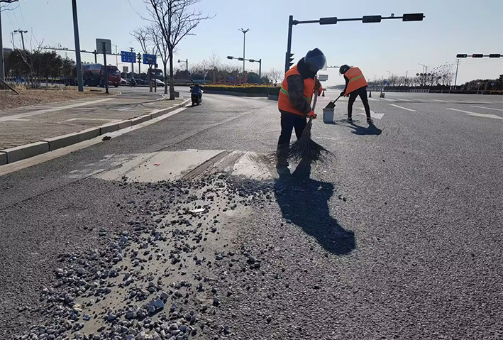 燈塔路路口,巡查人員發(fā)現(xiàn)大面積車輛拋灑物,生產(chǎn)骨干張學軍、徐習東、陸永柱接到公司應急處理電話第一時間趕赴現(xiàn)場,盡管天氣寒冷,但是大家干的熱火朝天,共清理泥塊30多處,長達800多米長;轉(zhuǎn)運石子、石塊50多車,他們再次用行動彰顯黨員示范風采。