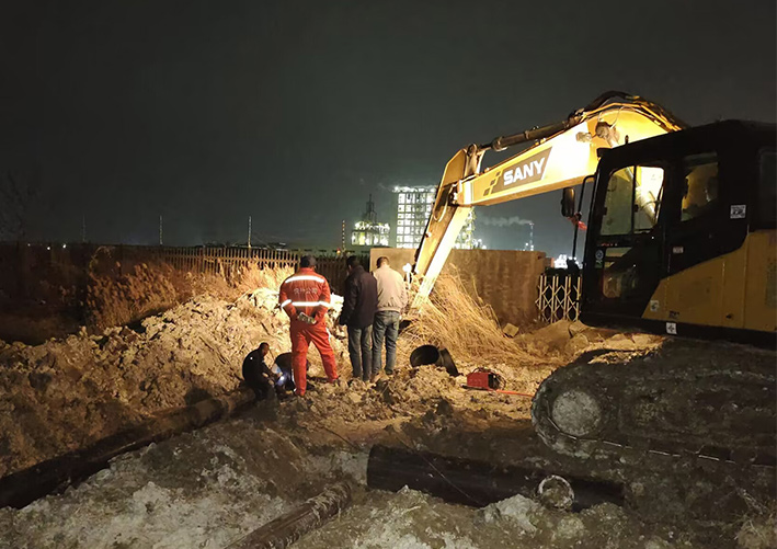 深夜10時許,一處施工現(xiàn)場,施工正酣,挖掘機轟鳴聲不斷,工人們還在加緊作業(yè),雖冬日寒意逼人,工地上仍是一派熱火朝天的景象。陸建軍、季小東等施工人員克服重重困難,破路面,挖掘管路泥土,熔接,鋪設管道,在遇到的每個困難中,都傾盡全力,擔當作為。經(jīng)過十余天緊張施工,已完成直徑400PE管道768米、直徑200給水管道804米鋪設工作,完成工作量99%,滿足了規(guī)劃的總體要求,后續(xù)修筑檢查井也在有序進行中。(楊維軍)