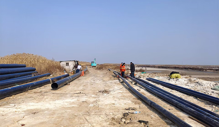 為確保工程順利實施,供水組一方面積極做好前期準備工作,另一方面經(jīng)過實地勘察和技術論證,制定了科學可行的施工方案。施工從11月29日起正式啟動,過程中,嚴格按照操作規(guī)程安裝施工,各司其職。在先期挖掘管路泥土中,存在多地段淤泥地,需轉土圍堰加固并及時抽水護坡、熔接管道中,附近拋填土車輛較多,干擾大,考慮到安全等問題,及時調整方案,經(jīng)大伙兒共同努力,鋪設管道等各項工作有條不紊地順利進行。